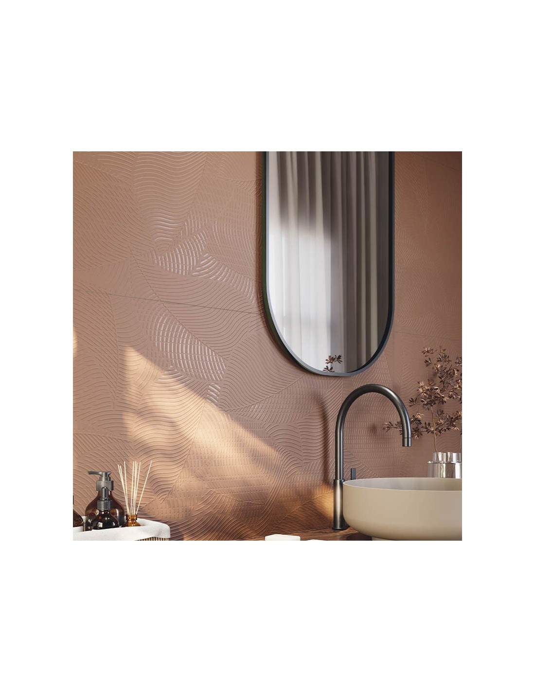 Lo más destacado del SIROS Ítaca Siena es su decorado botánico en relieve, trabajado en el mismo tono cálido del fondo, que crea un juego sutil de texturas y sombras. Esta característica dota a las superficies de un acabado único que combina la modernidad del diseño con la inspiración natural, perfecta para espacios que buscan calidez sin renunciar a la elegancia y el estilo contemporáneo.