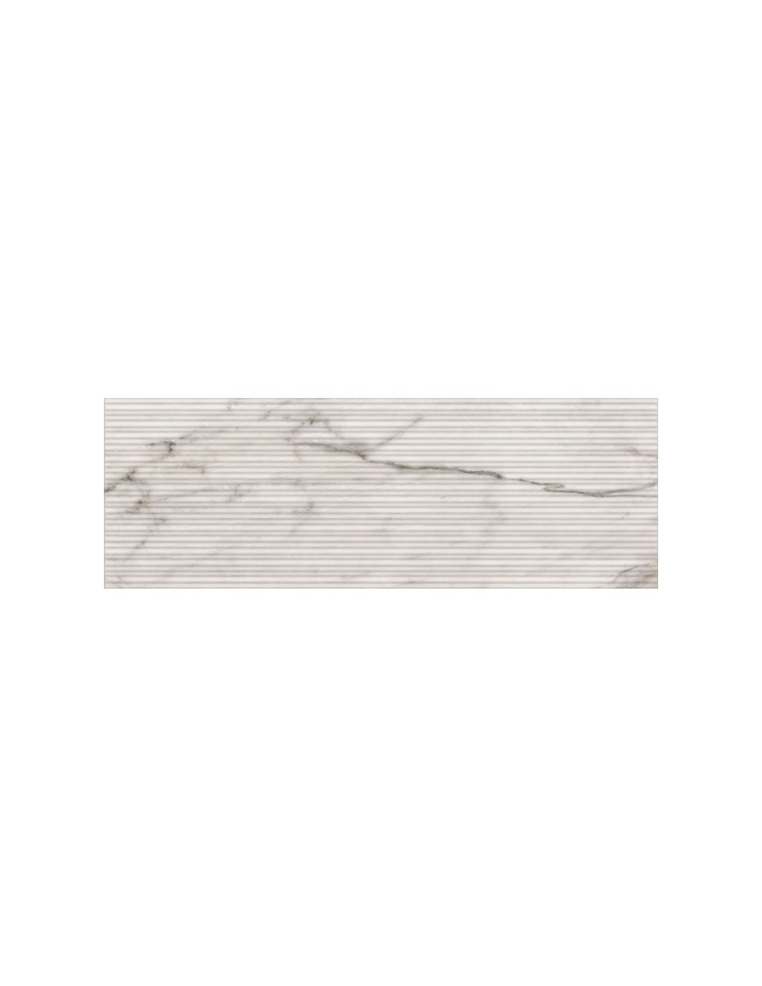 Fabricado en pasta blanca y con un formato de 33x100 cm, este revestimiento decorativo está diseñado para uso exclusivo en paredes interiores. Su acabado mate y bordes rectificados permiten una instalación limpia y continua. Combínalo con otras piezas lisas o decoradas de la colección y encuentra inspiración en nuestra selección de azulejos efecto mármol.