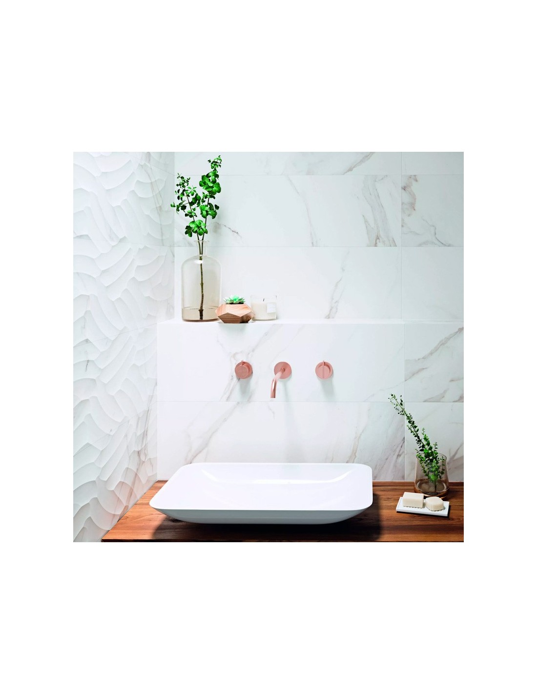 El Azulejo MARMOREA Calacata 31,5x100cm de Grespania destaca por su acabado mate y corte rectificado, que aportan una estética limpia y elegante. Su diseño imita a la perfección el mármol natural, ideal para quienes buscan sofisticación y atemporalidad en sus espacios.