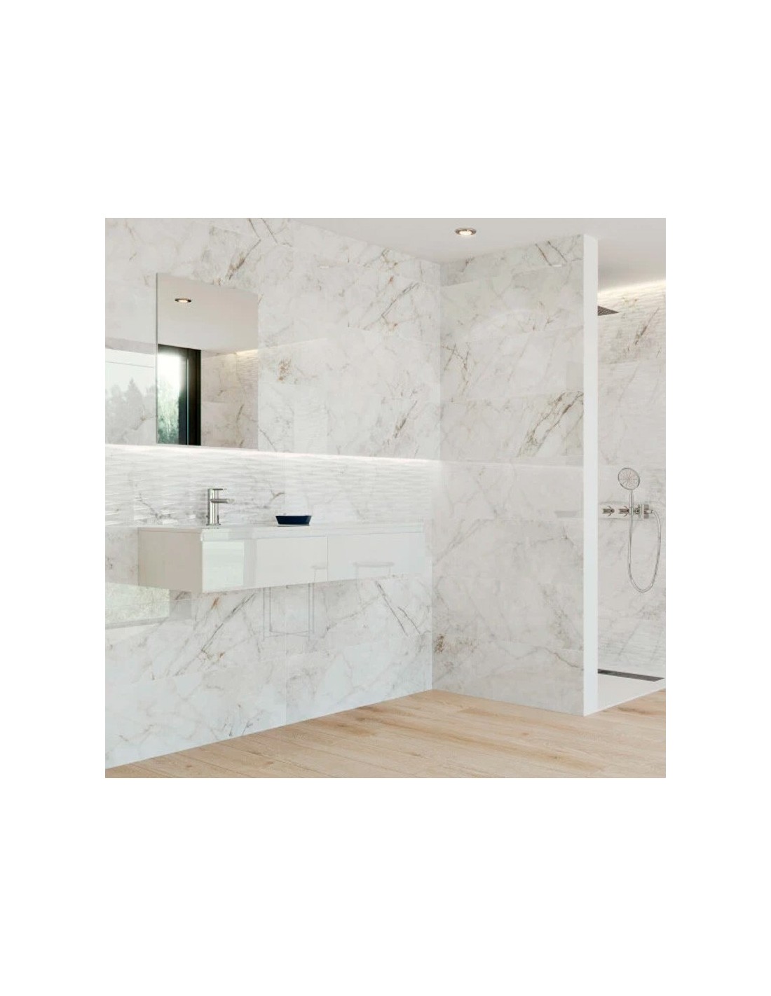 Forma parte de nuestra cuidada selección de azulejos efecto mármol, perfecta para quienes buscan elegancia sin excesos y materiales de alta durabilidad.