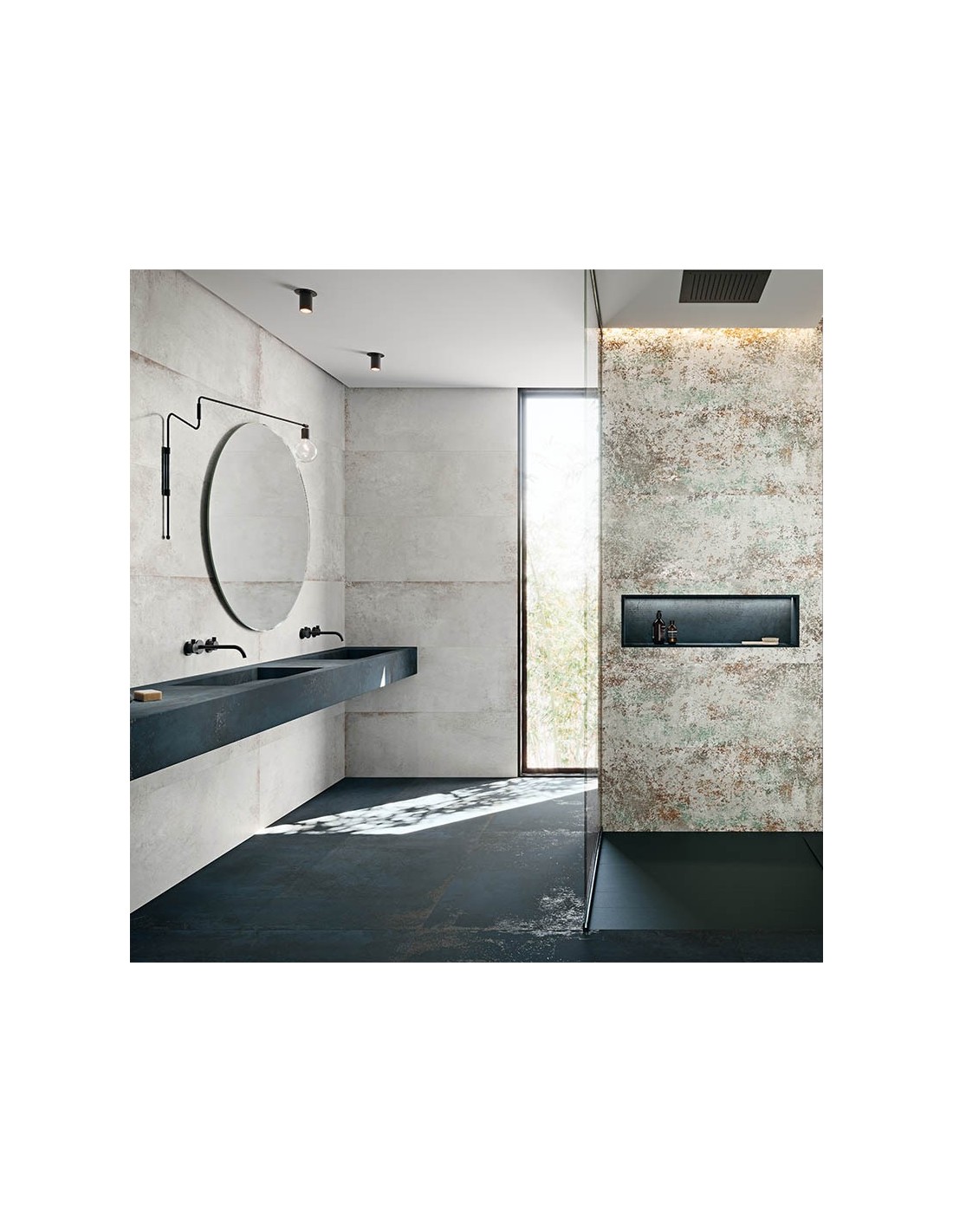Gracias a su formato rectangular de 45x120cm y corte rectificado, permite una instalación con juntas mínimas de 1,5 mm, lo que da lugar a superficies visualmente continuas y limpias. Su espesor de 8 mm garantiza resistencia y durabilidad, y su tono gris neutro se convierte en el fondo perfecto para combinar con elementos metálicos, madera natural o acabados industriales.