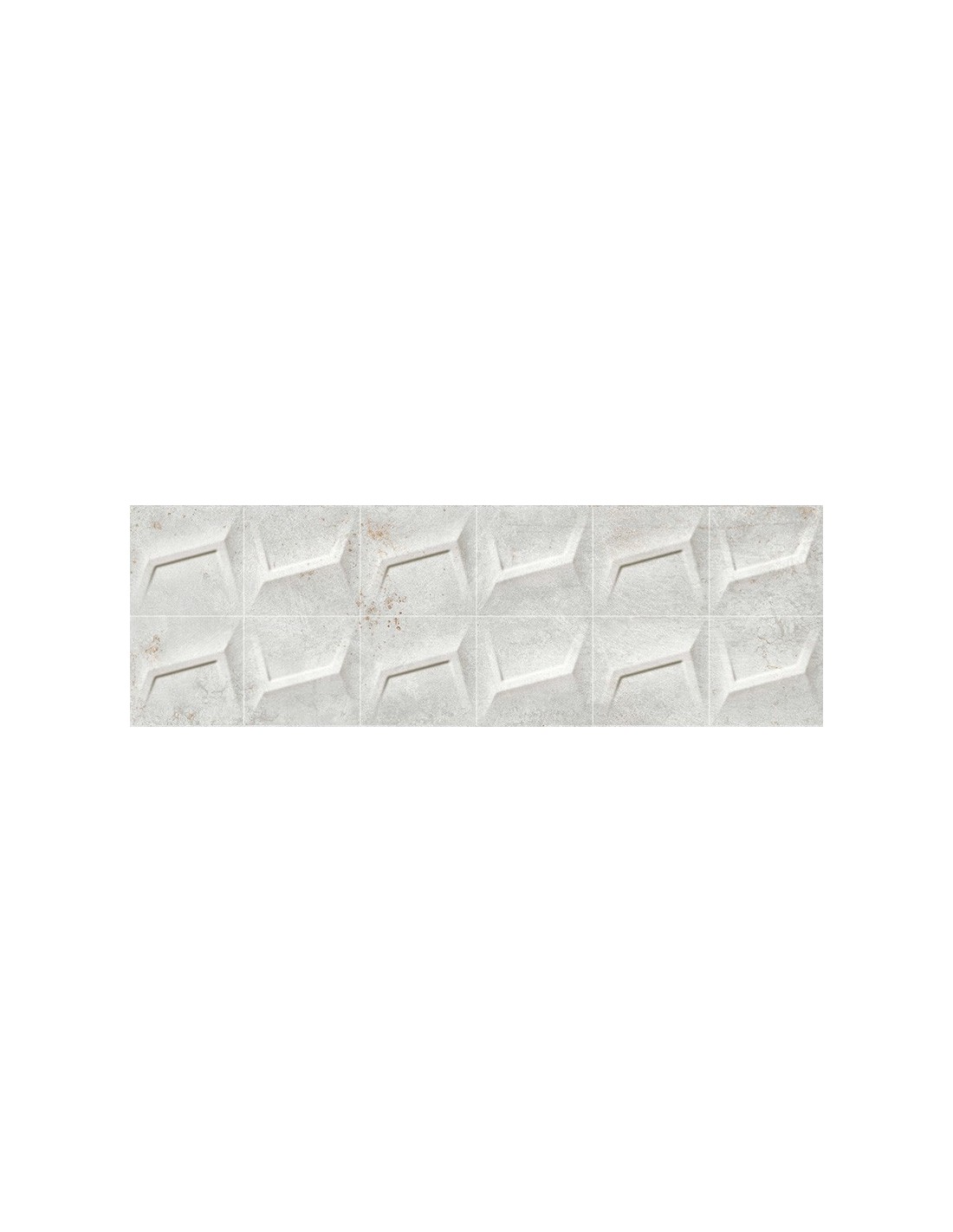 El formato de 31,5x100cm, su espesor de 8 mm y los bordes rectificados permiten una colocación precisa con juntas mínimas de 1,5 mm. El relieve geométrico confiere un toque técnico y actual, ideal para ambientes contemporáneos como baños, cocinas o espacios comerciales.
