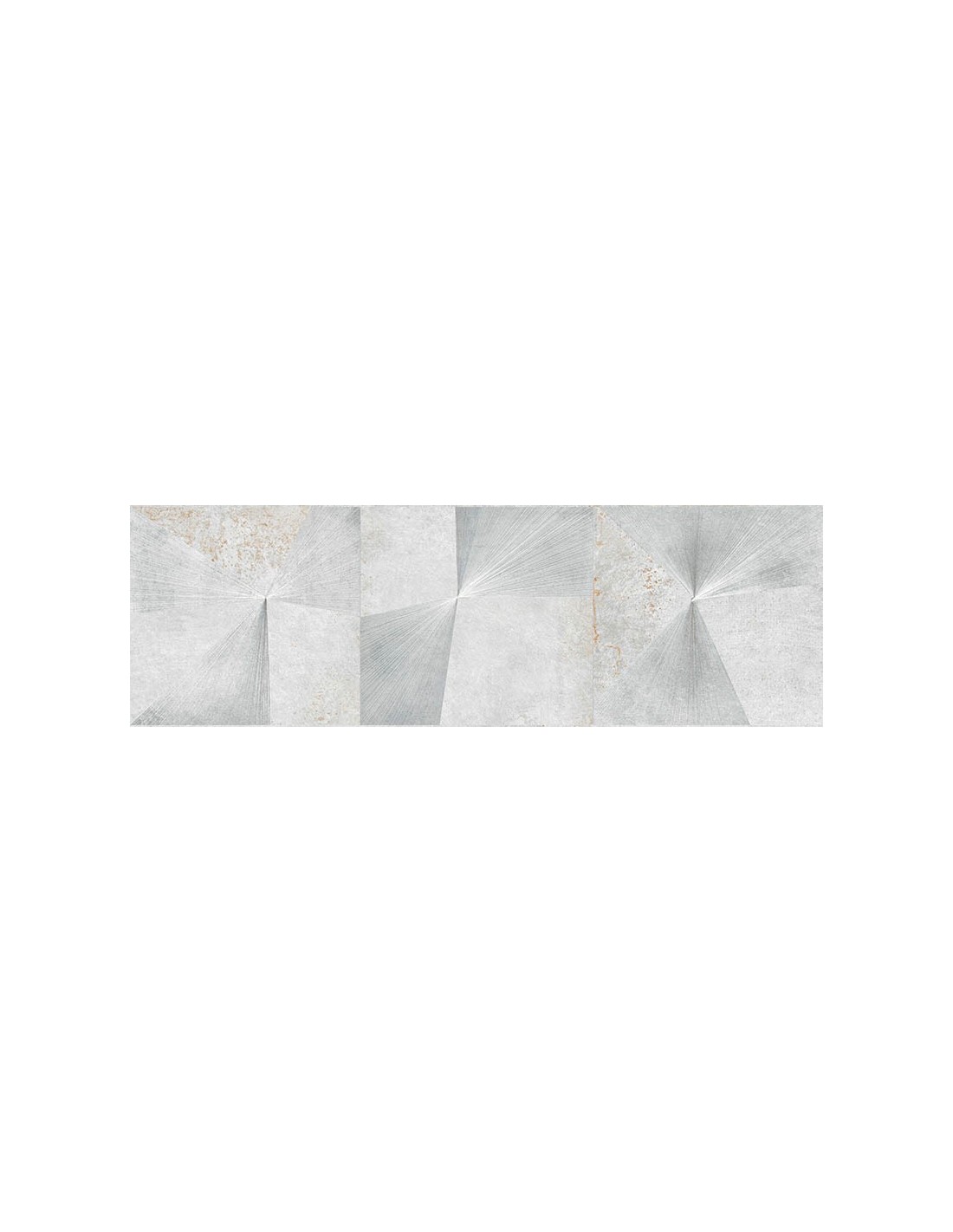 El azulejo GALVANIC Lezama Aluminio 31.5x100cm de Grespania (ref. 95GV321) destaca por su decoración geométrica lineal que recuerda a destellos de luz sobre una superficie gris metálica. Este elegante relieve aporta movimiento visual sin saturar el espacio, siendo parte de la colección GALVANIC de Grespania, dentro de nuestra sección de azulejos neutros.