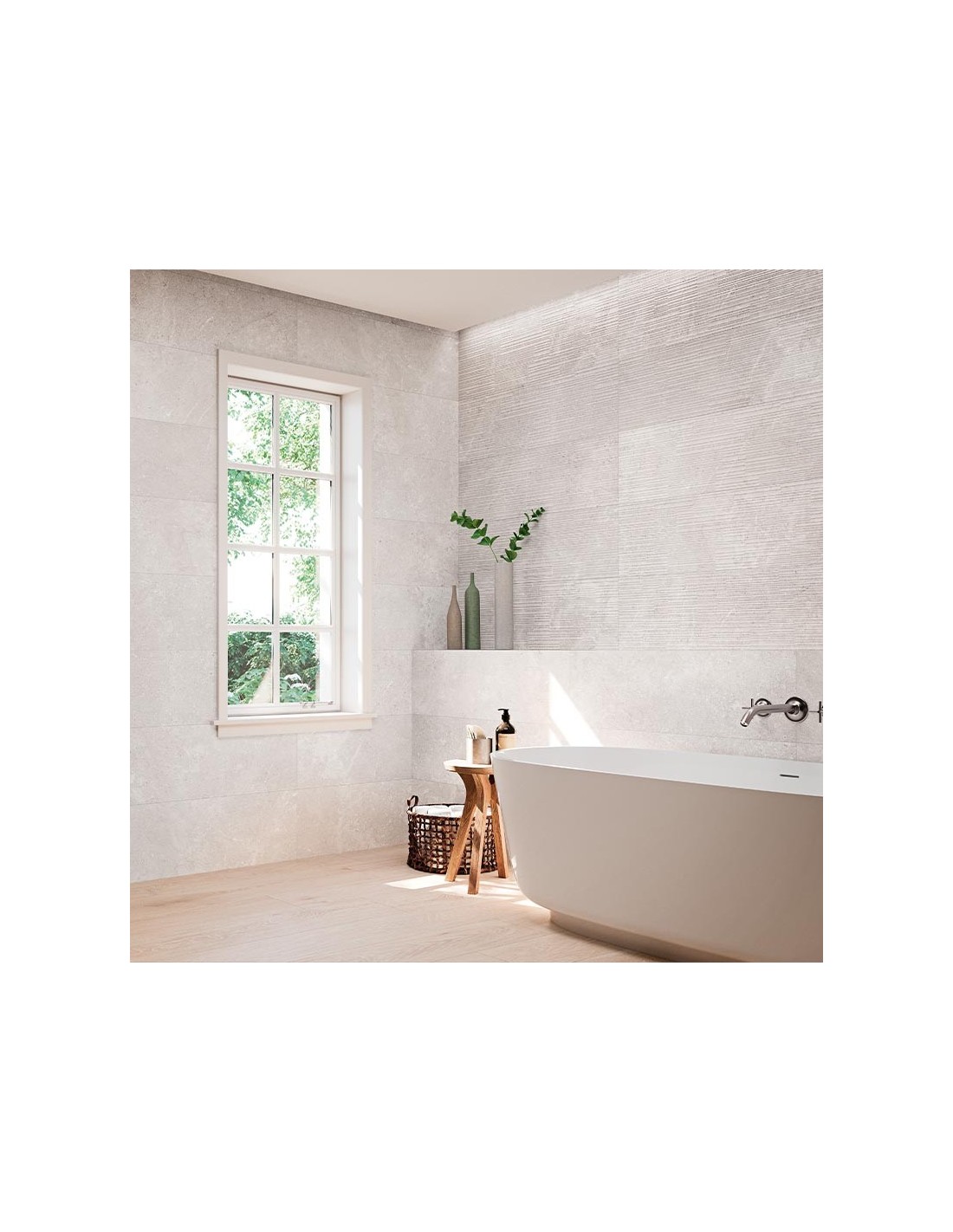 Fabricado en cerámica en pasta blanca, cuenta con un acabado mate que realza su textura pétrea, además de presentar bordes rectificados que permiten una instalación con junta mínima de 1,5 mm para un efecto visual continuo. Su formato de 30x60 cm y espesor de 8 mm lo hacen perfecto tanto para proyectos residenciales como contract.