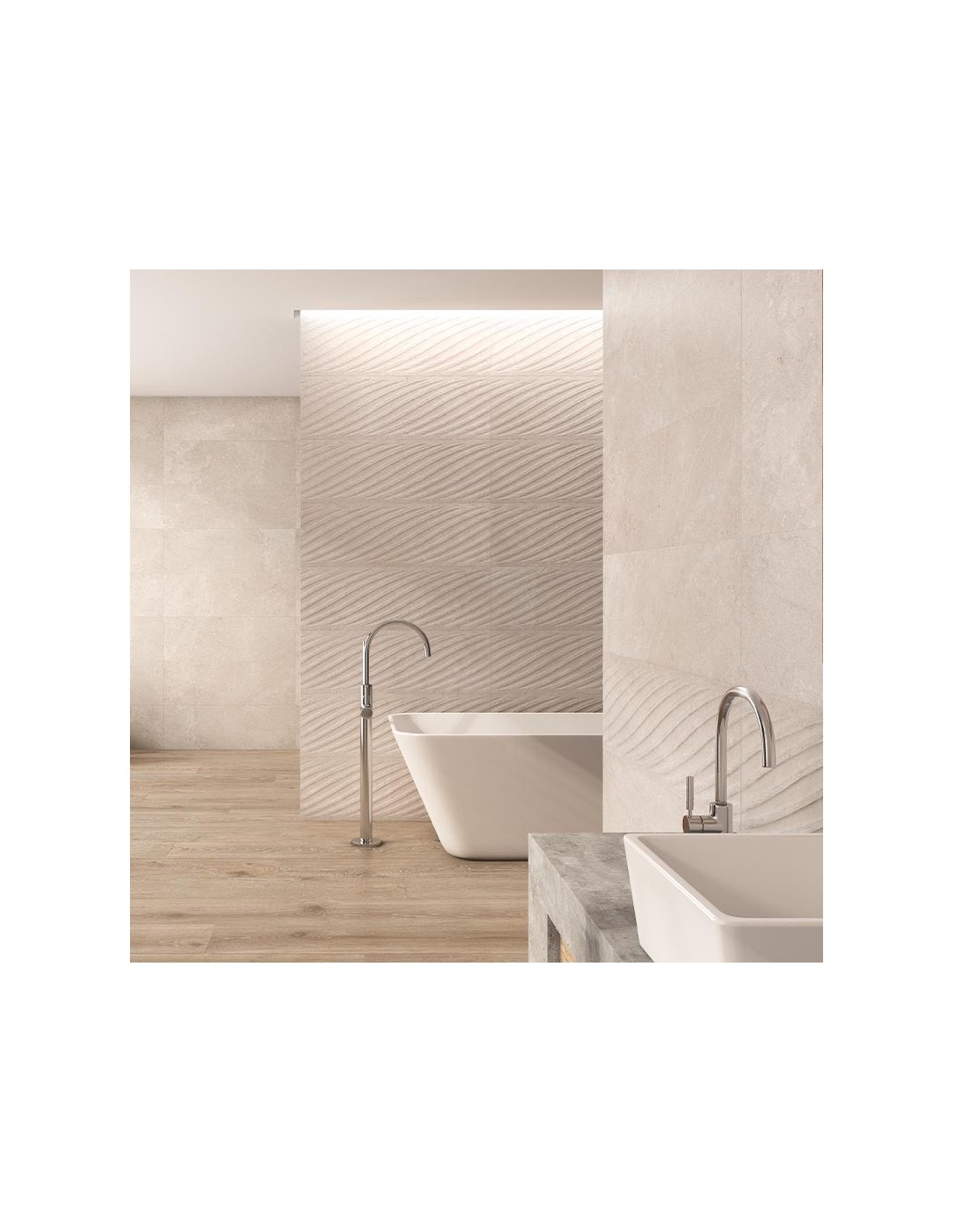El azulejo LOIRE Rhin Arena de Grespania, con referencia 95IO711, combina elegancia natural con un diseño decorativo fluido y sofisticado. Su relieve curvo, inspirado en formas orgánicas, crea un efecto visual de movimiento que transforma cualquier pared en una superficie artística. Esta textura, sutil pero impactante, aporta valor decorativo sin saturar el espacio.