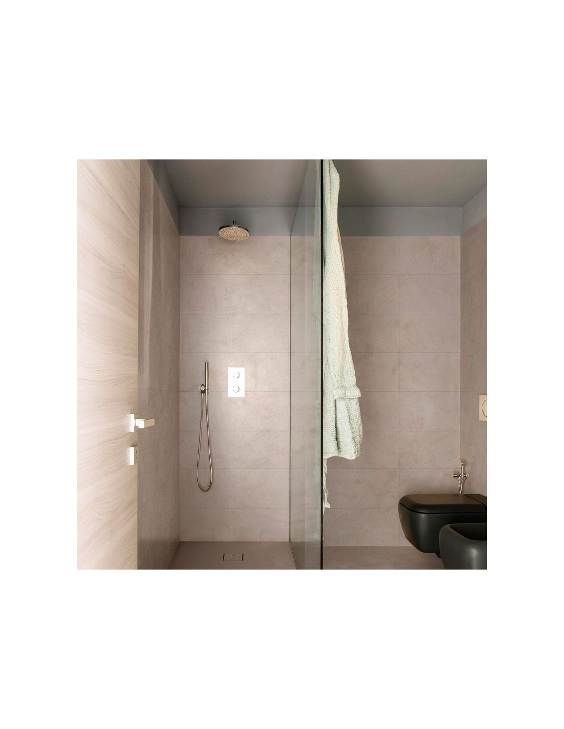 Este azulejo neutro se adapta a baños, cocinas o espacios comerciales, creando superficies continuas de efecto natural.