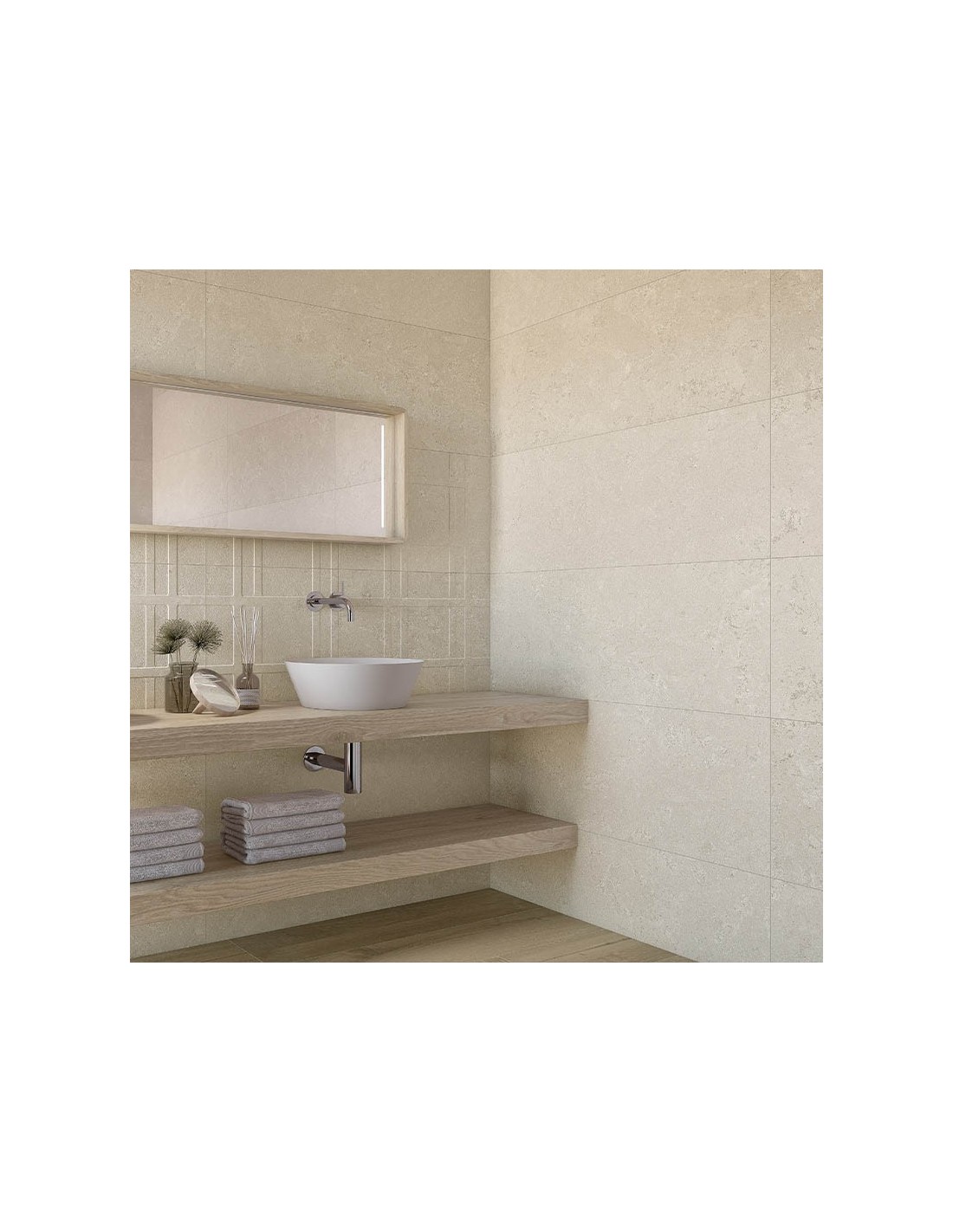 Su formato de 45x120cm con corte rectificado y un espesor de 8mm permite una instalación con junta mínima de solo 1,5mm, garantizando un acabado continuo y de alta precisión. El tono arena aporta un matiz acogedor, perfecto para acompañar mobiliario de madera, textiles naturales o elementos decorativos en tonos tierra.
