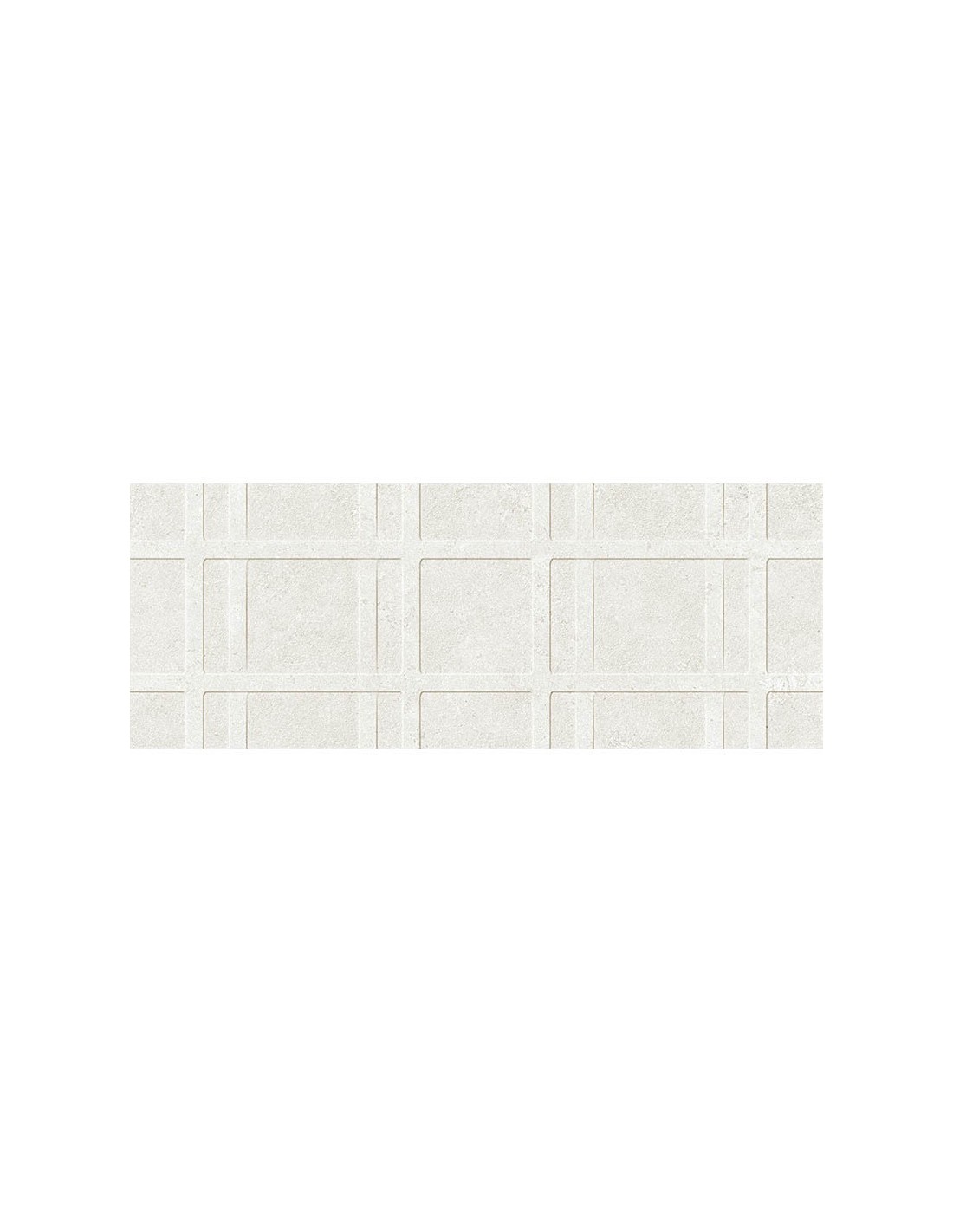 Su acabado mate natural resalta una decoración en relieve con formas geométricas que generan una cuadrícula de gran tamaño sobre la superficie, aportando un aire arquitectónico contemporáneo a cualquier ambiente. Es perfecto para crear paredes con volumen, sin necesidad de recurrir a colores fuertes.