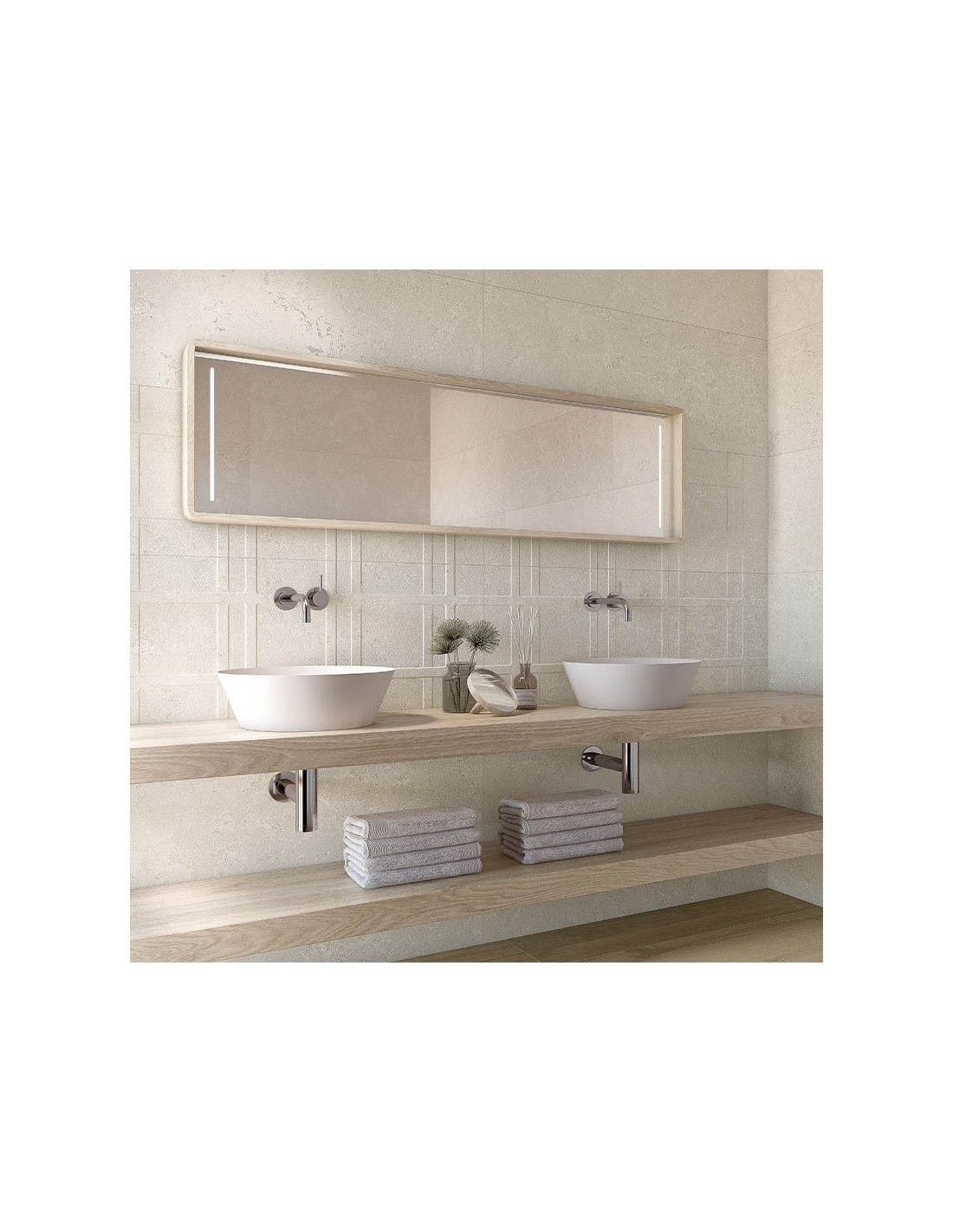 Este revestimiento cerámico es ideal para cuartos de baño, cocinas o zonas comunes donde se desee integrar diseño y funcionalidad. Puede combinarse con los modelos lisos de la misma colección para generar contrastes armónicos en proyectos residenciales o contract.