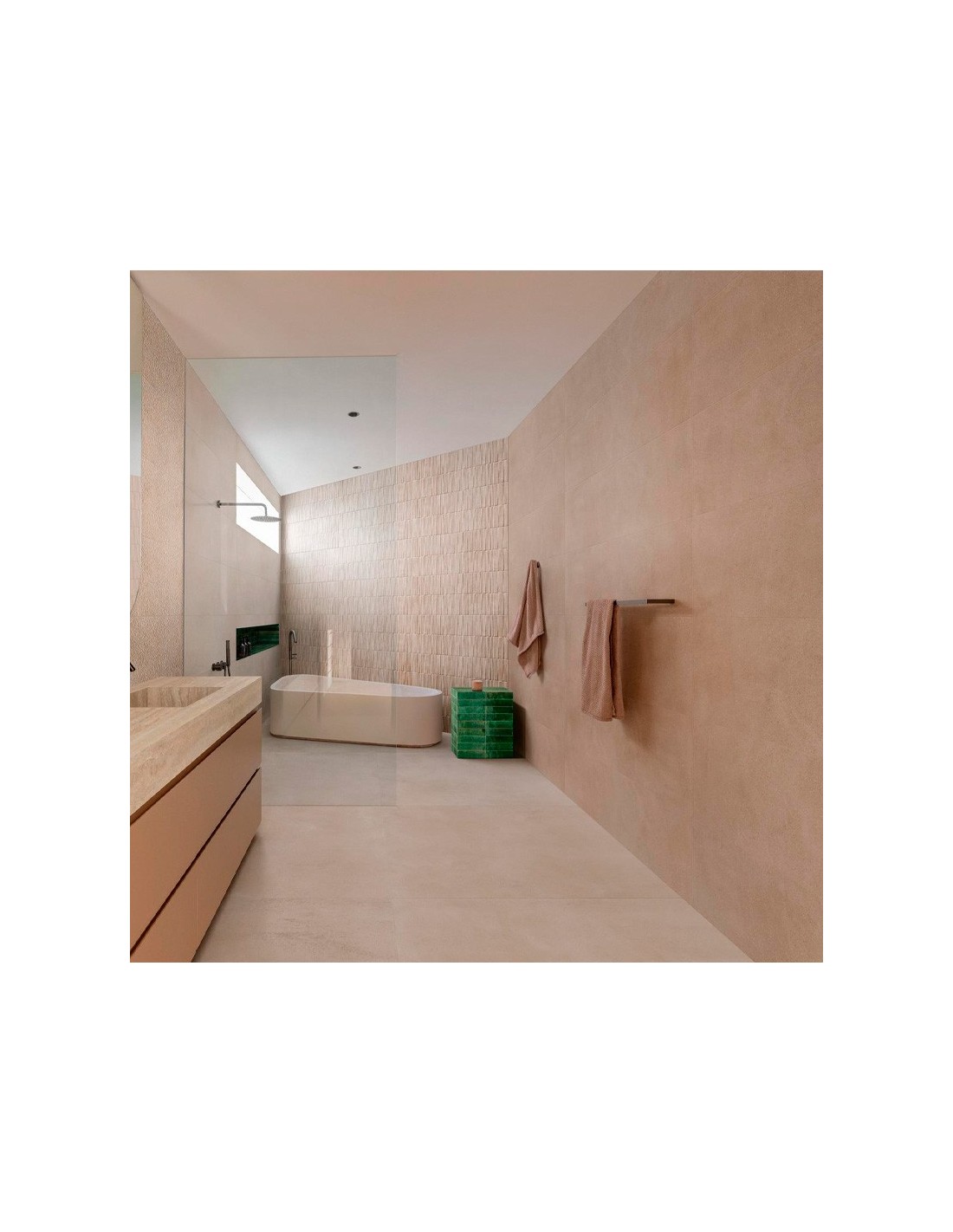Su tonalidad Pomice, un beige claro con matices suaves, aporta calma y elegancia a baños y espacios de bienestar.