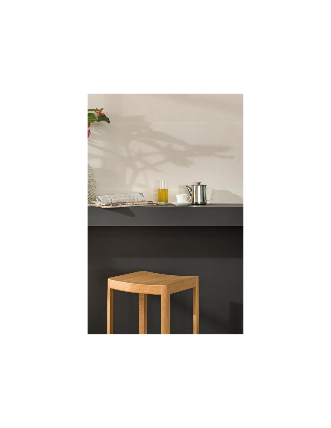 Fabricado en pasta blanca, este azulejo destaca por su resistencia, precisión dimensional y facilidad de instalación. Su acabado mate y su tonalidad ivory reproducen con gran realismo las variaciones gráficas de la piedra, aportando profundidad visual y una sensación natural muy apreciada en baños, cocinas y espacios residenciales modernos.