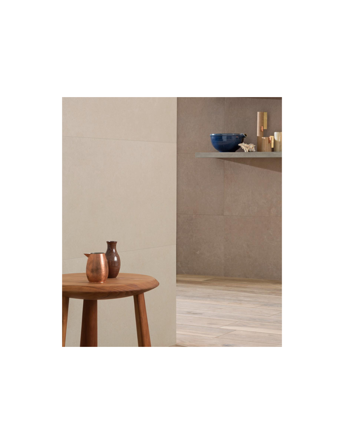 Fabricado en pasta blanca, este azulejo destaca por su resistencia, precisión dimensional y facilidad de instalación. Su acabado mate y su tonalidad moka reproducen con gran realismo las variaciones gráficas de la piedra, aportando profundidad visual y una sensación natural muy apreciada en baños, cocinas y espacios residenciales modernos.