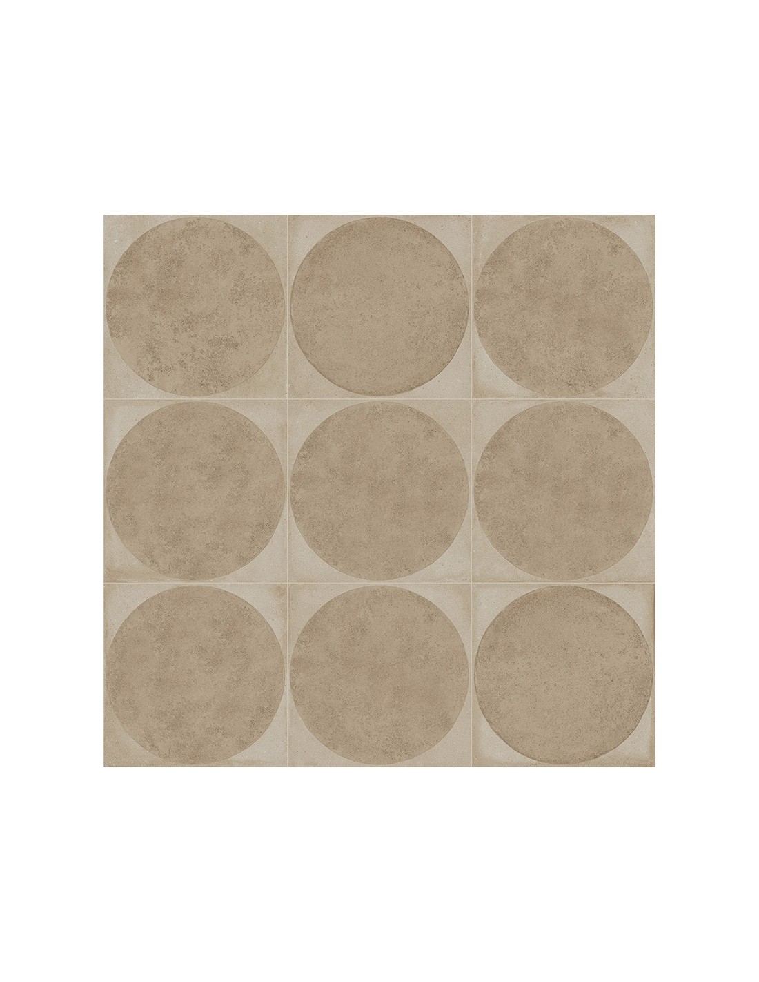 Los porcelánicos ARTCRAFT Sabbia decoro bolli de Marazzi llaman la atención por su orignal decorado circular oscurecido respecto a los tonos de la base. Perfectos para combinar con el resto de porcelánicos ARTCRAFT de la misma colección y medidas. ¡Rompe con la monotonía de tu reforma con estas decorativas baldosas efecto hidráulico!