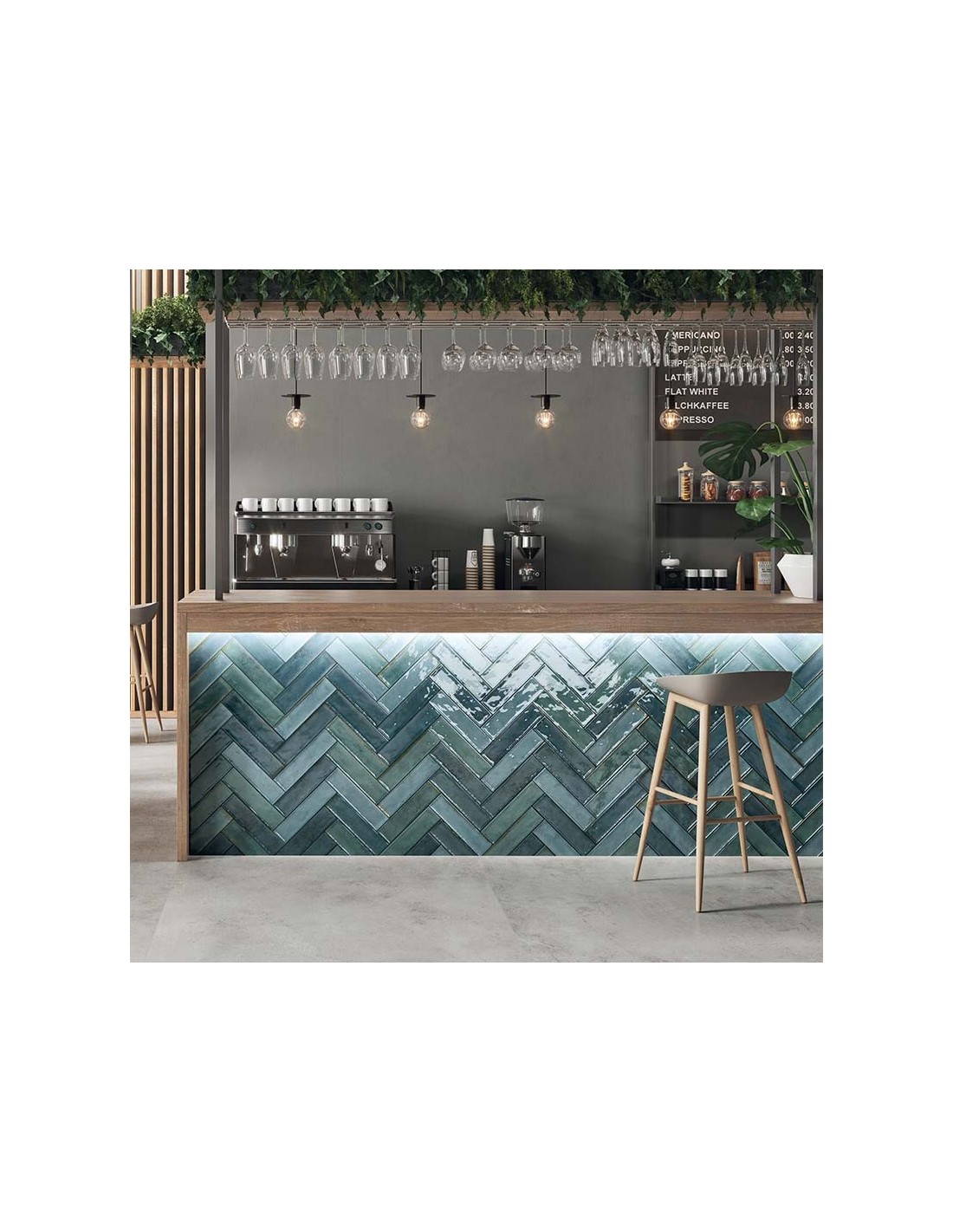 Con un formato de 7,5x30 cm, este azulejo porcelánico permite múltiples disposiciones creativas: desde colocaciones en espiga o escalonadas, hasta patrones verticales o trenzados. Cada baldosa refleja una personalidad única gracias a su superficie irregular y a la riqueza visual del color Aqua, ideal para aportar dinamismo y frescura en cocinas, baños, zonas de agua o paredes decorativas.