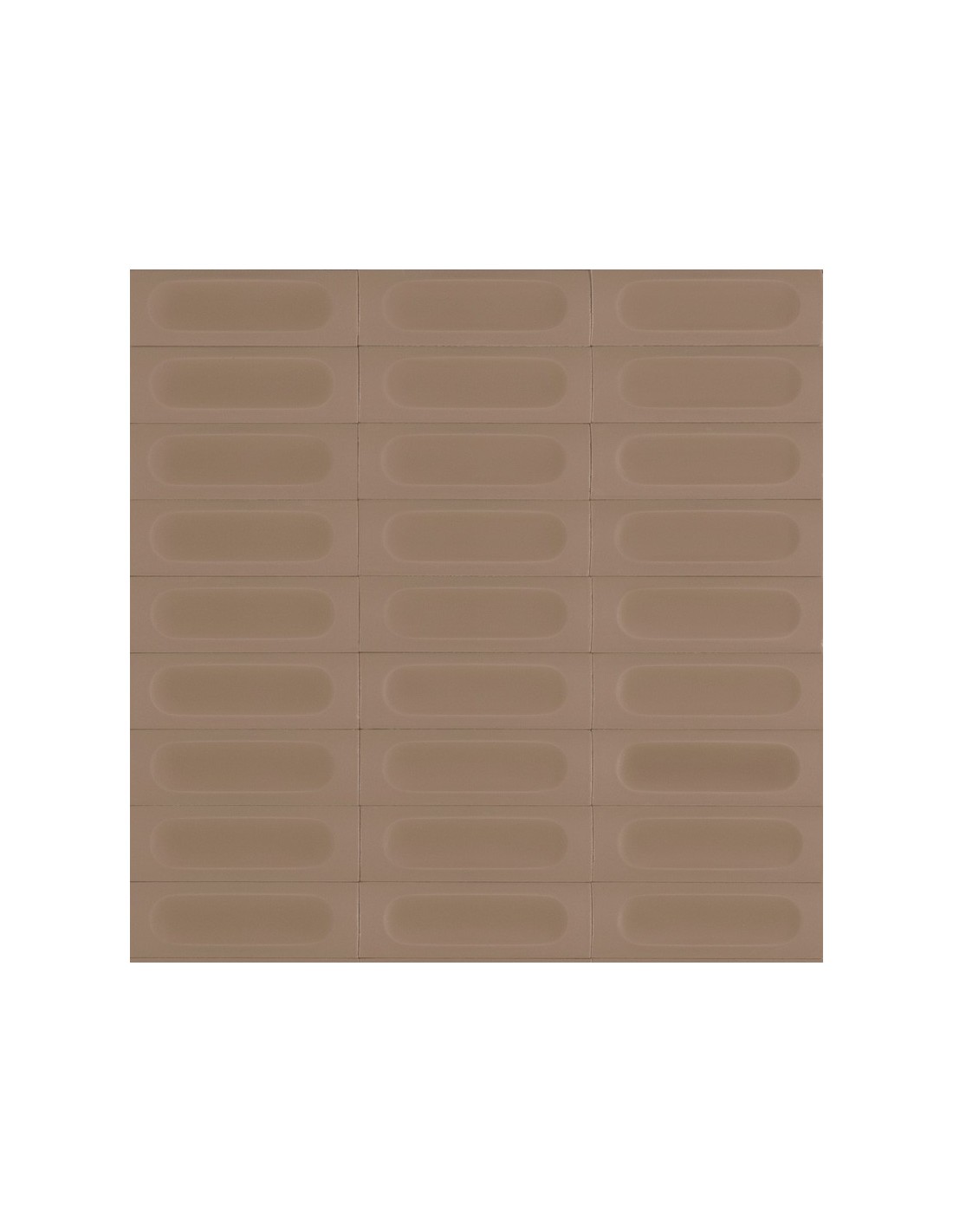 El Azulejo CONFETTO Corda Savoiardo 3D de Marazzi presenta un relieve vertical que aporta un toque distintivo a su tono cuerda, ideal para generar dinamismo visual.