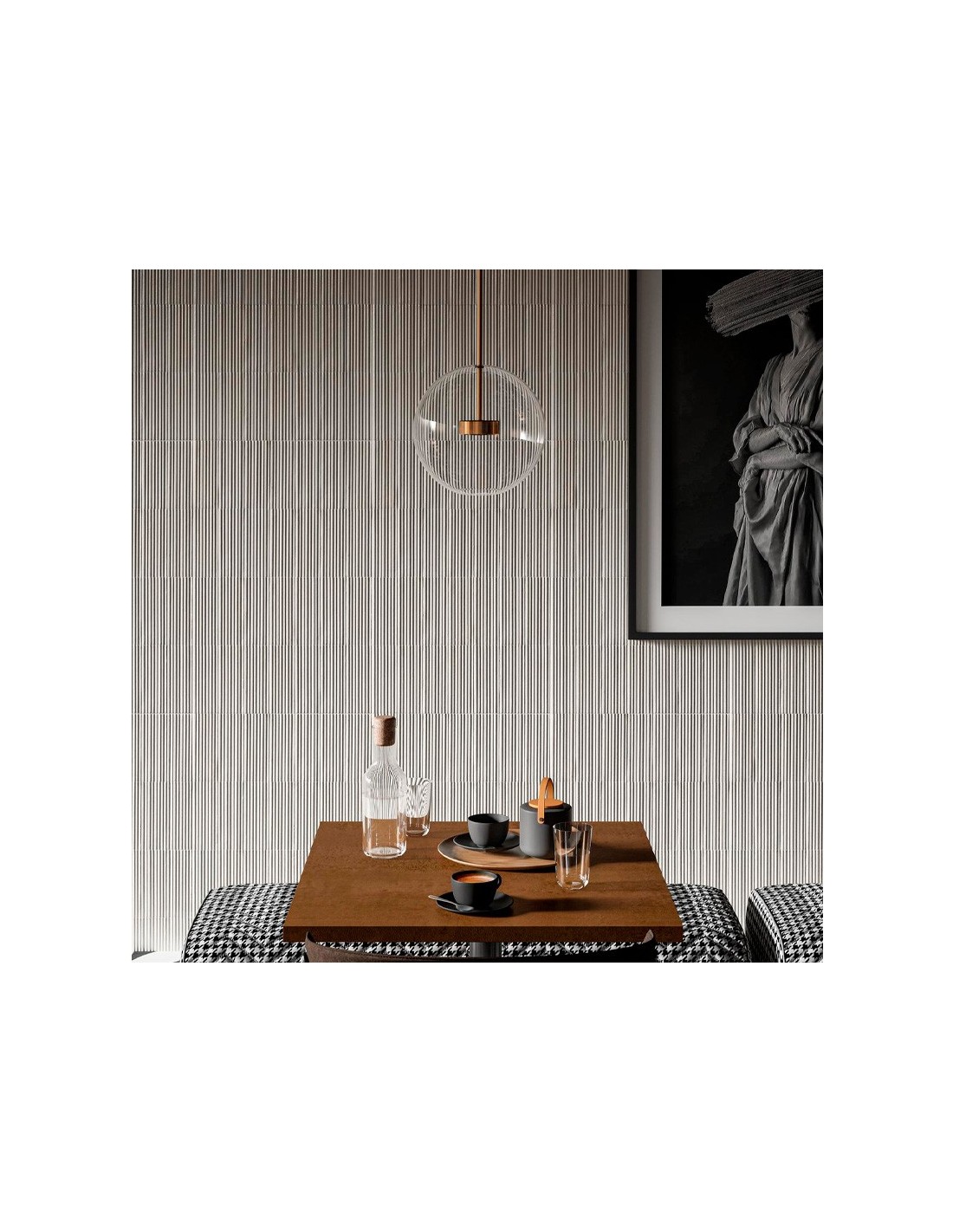 Combina este modelo con madera, mármol o cemento para crear espacios únicos con carácter propio. Gracias a su formato reducido, permite diseños personalizados, desde mosaicos hasta paredes completas.