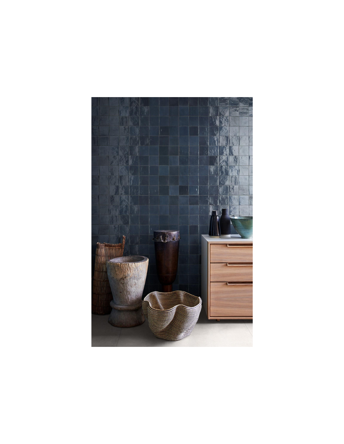 Combina este modelo con madera, mármol o cemento para crear espacios únicos con carácter propio. Gracias a su formato reducido, permite diseños personalizados, desde mosaicos hasta paredes completas.