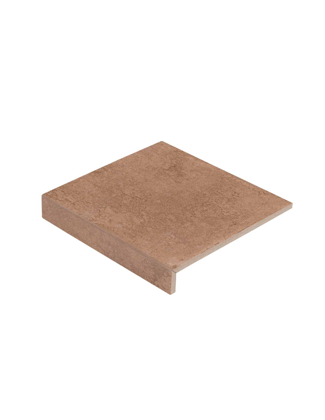 El Peldaño FONDANT Cotto de Mainzu se fabrica con porcelánico de alta calidad, ofreciendo una excelente resistencia al desgaste, a la humedad y al paso del tiempo. Su superficie mate y su textura artesanal reflejan la esencia del diseño hidráulico clásico, adaptado a las tendencias contemporáneas. Es ideal para exteriores, debido a su alto grado de antideslizamiento, aportando un toque de distinción y originalidad.