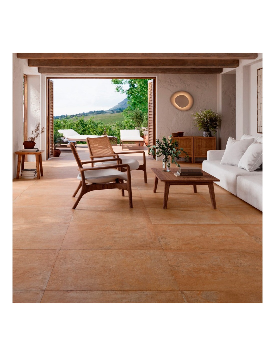 Fabricado en porcelánico de alta calidad, destaca por su gran resistencia al desgaste, al tránsito y a la humedad. Su acabado mate y su tonalidad Siena crean ambientes acogedores y con carácter, siendo perfecto para su uso en cocinas, baños, salones o exteriores.