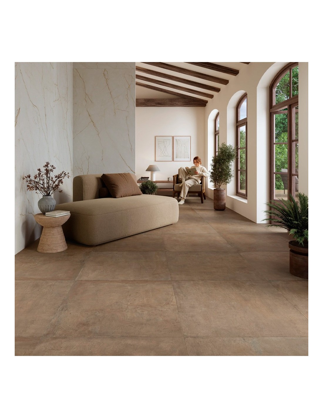 Fabricado en porcelánico de alta calidad, destaca por su gran resistencia al desgaste, al tránsito y a la humedad. Su acabado mate y su tonalidad Siena crean ambientes acogedores y con carácter, siendo perfecto para su uso en cocinas, baños, salones o exteriores.