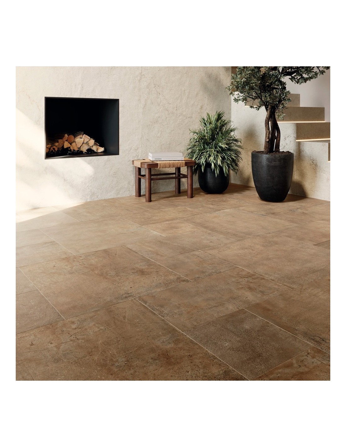 Fabricado en porcelánico de alta calidad, destaca por su gran resistencia al desgaste, al tránsito y a la humedad. Su acabado mate y su tonalidad Siena crean ambientes acogedores y con carácter, siendo perfecto para su uso en cocinas, baños, salones o exteriores.