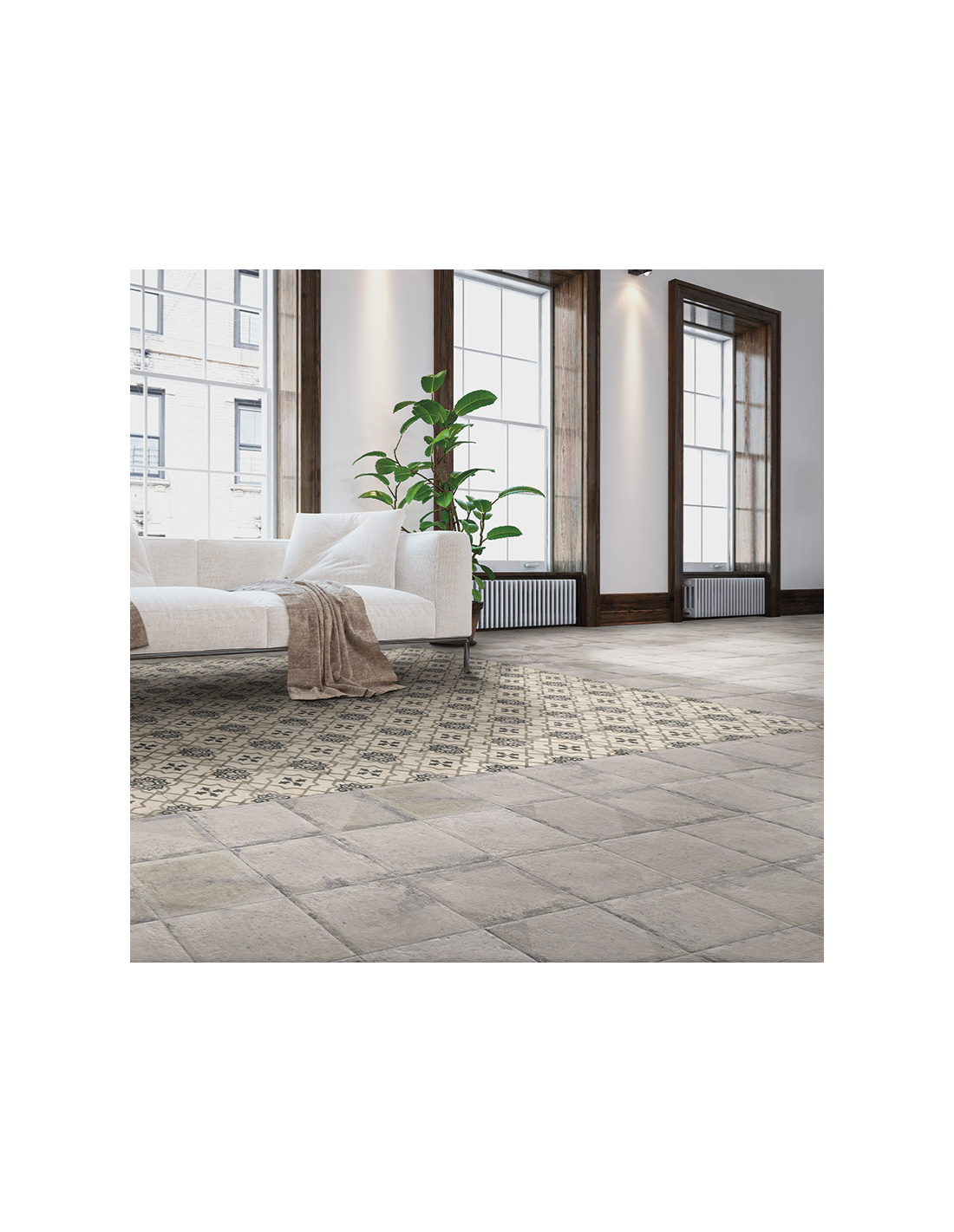 El Porcelánico NORLAND Grey de Mainzu (PT02927) está fabricado con porcelánico de alta resistencia, ideal para suelos y paredes tanto en interiores como en exteriores. Su superficie presenta un acabado mate con una textura suave que reproduce fielmente el aspecto artesanal de los mosaicos hidráulicos. Es una opción perfecta para quienes buscan durabilidad sin renunciar al estilo decorativo más clásico.