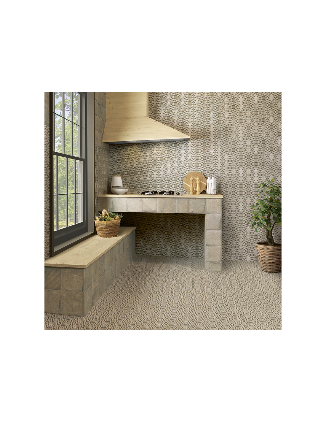 El Porcelánico NORLAND Oslo de Mainzu (PT02932) está fabricado con porcelánico de alta resistencia, ideal para suelos y paredes tanto en interiores como en exteriores. Su superficie presenta un acabado mate con una textura suave que reproduce fielmente el aspecto artesanal de los mosaicos hidráulicos. Es una opción perfecta para quienes buscan durabilidad sin renunciar al estilo decorativo más clásico.
