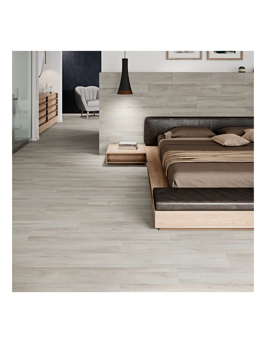 Suelo porcelánico efecto madera, modelo Sajonia Fresno de la colección Sajonia. Pavimento cerámico de primera calidad, en formato 19.5x120cm, corte rectificado y acabado mate para dar una sensación de madera natural más real.
