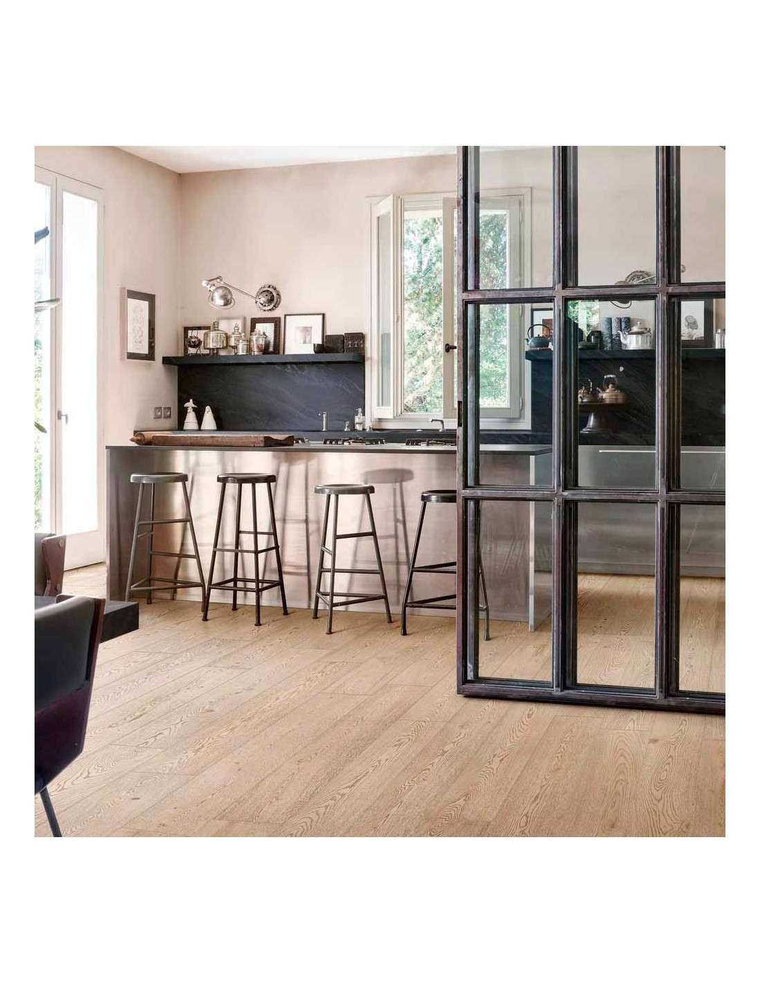 La calidez de la madera se respresenta en cada detalle del porcelánico Vivo Grano 22,5x180cm de Marazzi. Fabricados con tecnología 3D Ink, reflejan nudos y vetas de alto realismo, consiguiendo así toda la calidez de la madera con las prestaciones y resistencia de la cerámica. El gran formato 22,5x180cm, acabado mate y corte rectificado de los cantos, son la clave para conseguir un ambiente actual y moderno, pero con la sensación de confort de la madera de siempre.